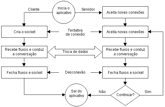 Pelo fato de ser baseada em conexões, a classe Socket fornece uma interface de fluxos para operações de leitura e escrita (gravação). As classes do pacote java.io devem ser usadas para acesso a um socket conectado: