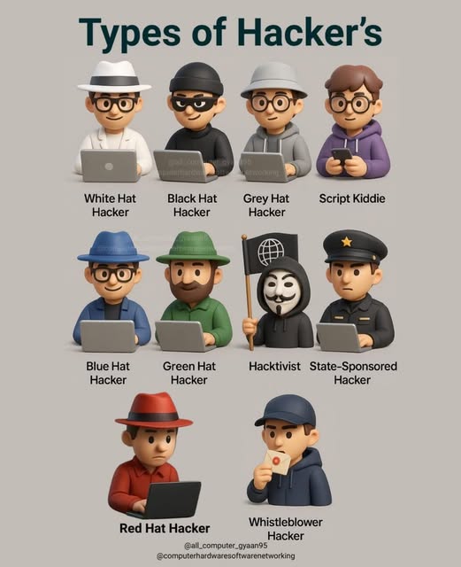 | #TypesOfHackers #CyberSecurity #EthicalHacking #HackerTypes #WhiteHatHacker #BlackHatHacker #GreyHatHacker #Hacktivist #CyberWorld #InfoSec #CyberAwareness #Hacking101 #TechEducation #DigitalSecurity #CyberThreats |