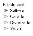 <input type="radio" name="estado" value="viuvo"> Viúvo