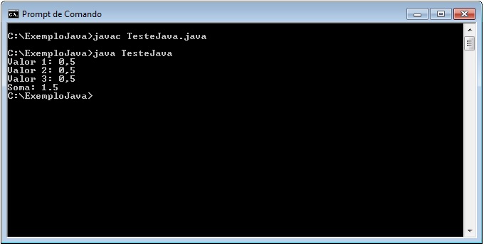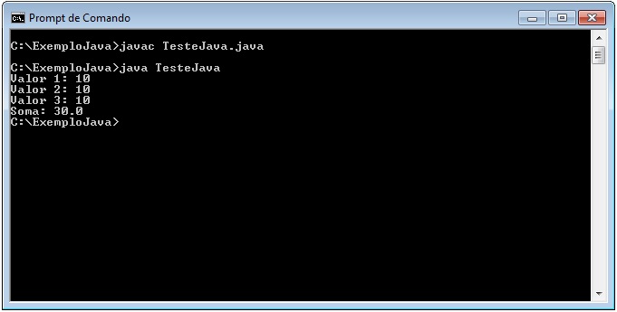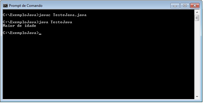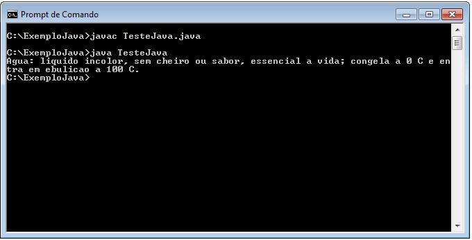 C:\ExemploJava>javac TesteJava.java C:\ExemploJava>java TesteJava |