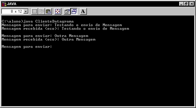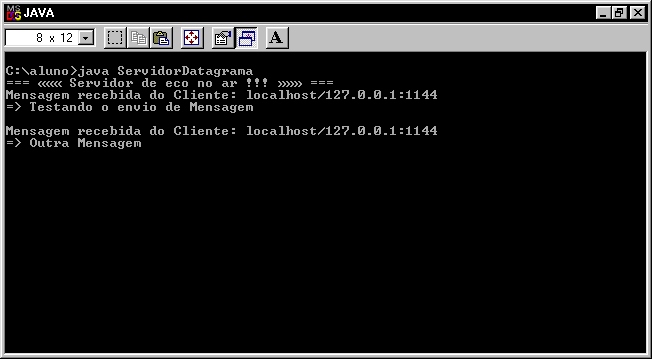 linha de comando: C:\...>java ServidorDatagrama