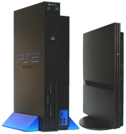 O Playstation 2, em suas duas versões.