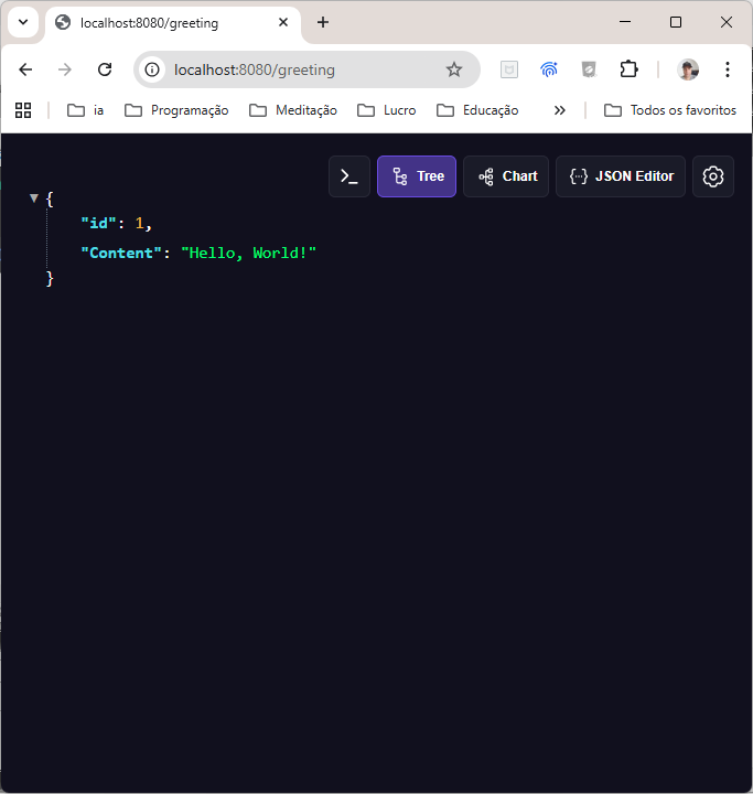 Aí está o JSON "Hello, World!" do REST API criado