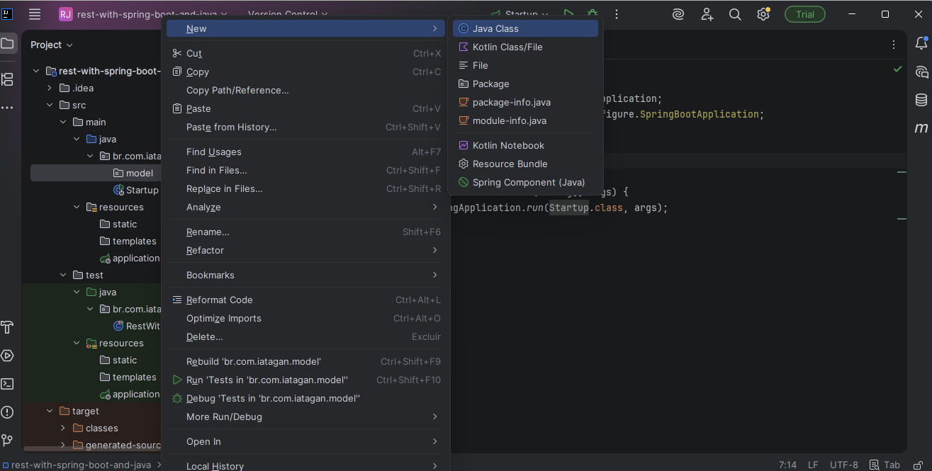 Clique em new depois em Class