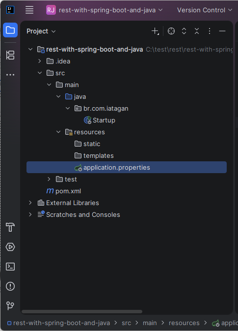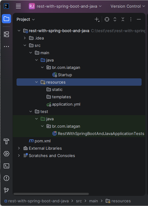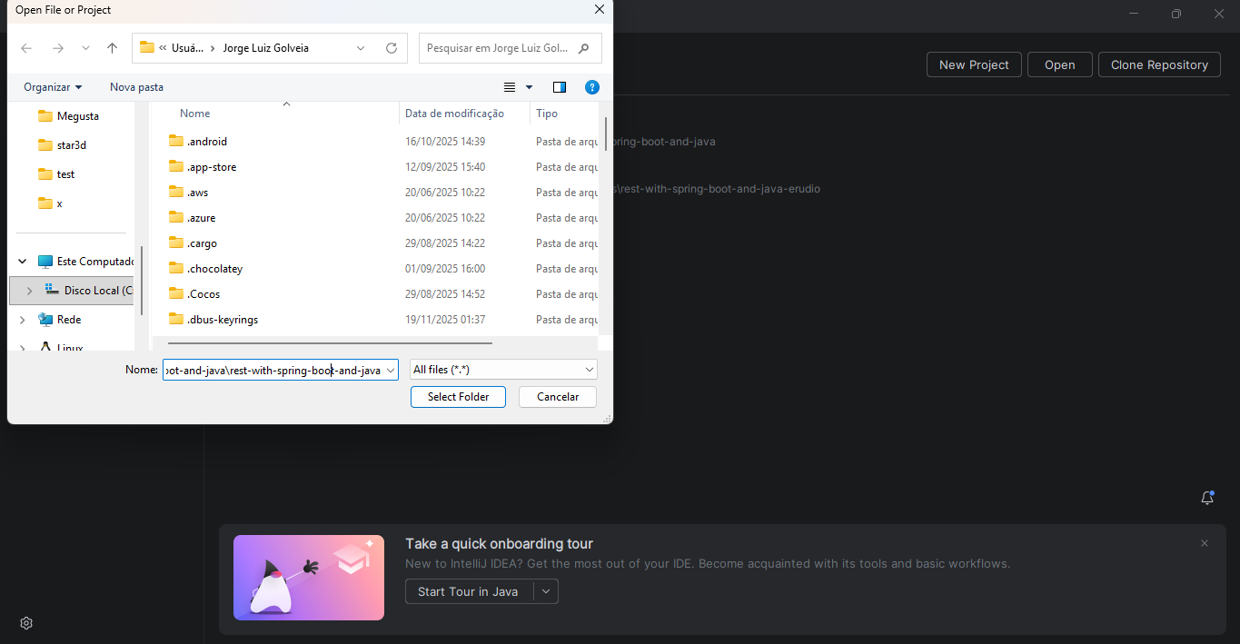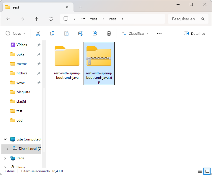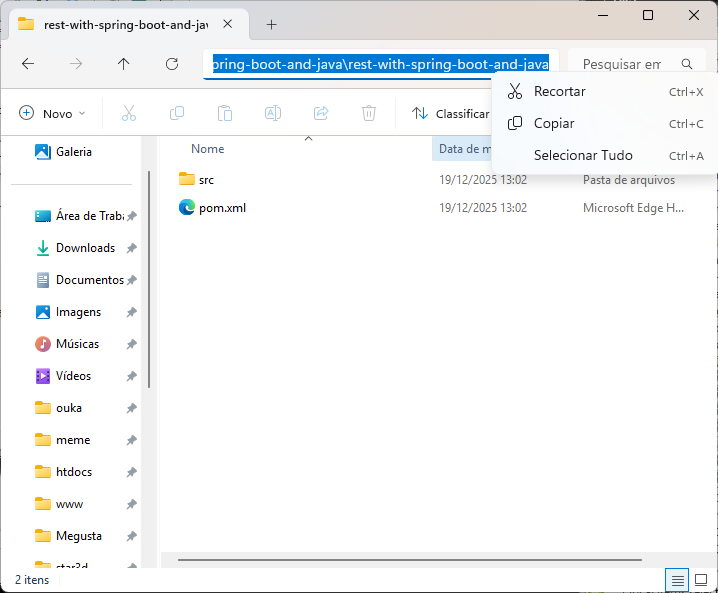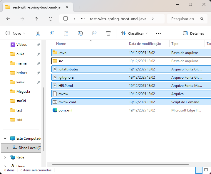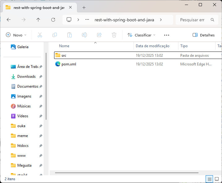Entre na pasta rest-with-spring-boot-and-java, entre de novo na pasta rest-with-spring-boot-and-java