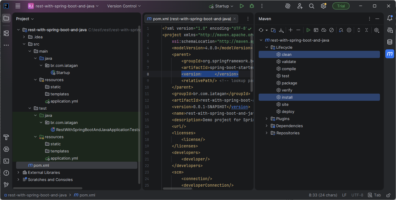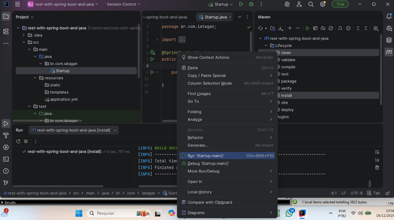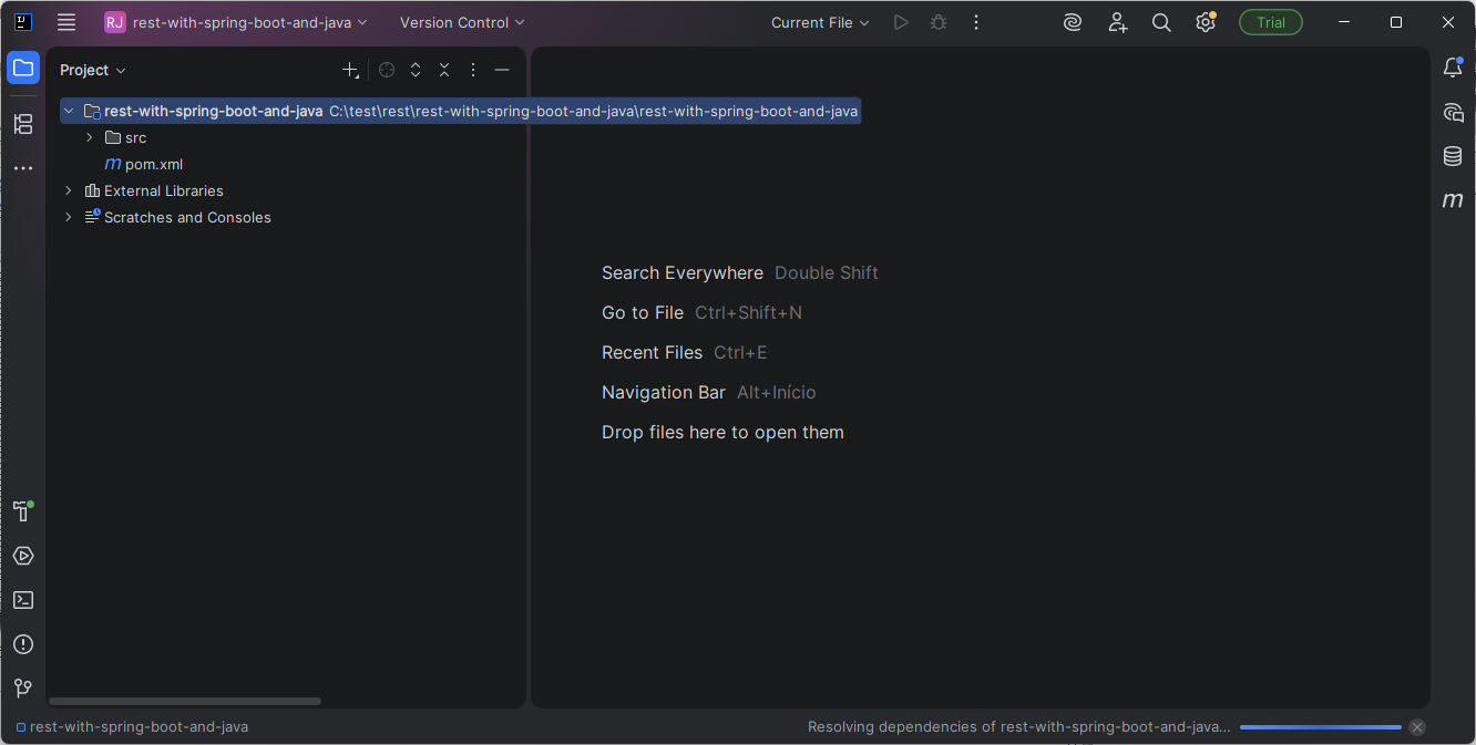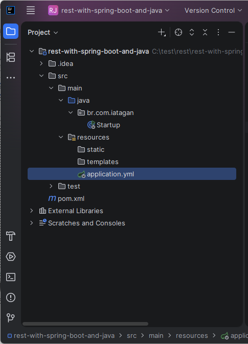 Entre na pasta rest-with-spring-boot-and-java, entre de novo na pasta rest-with-spring-boot-and-java