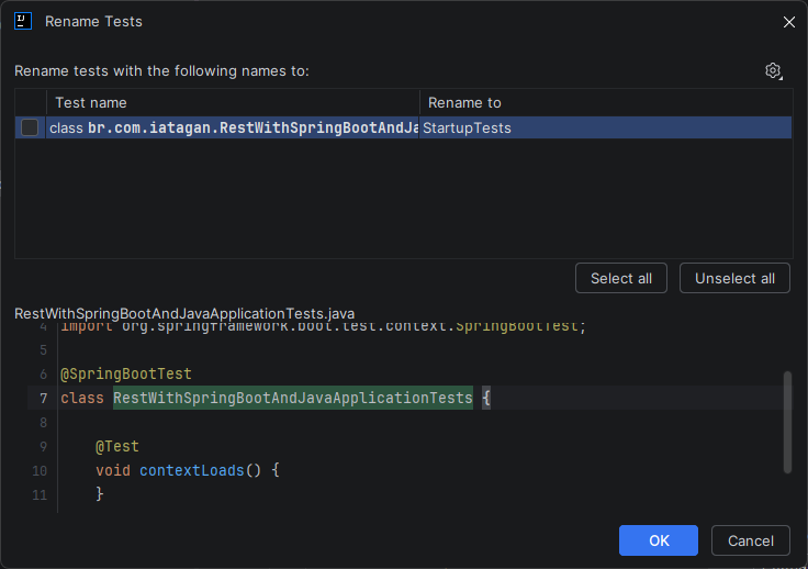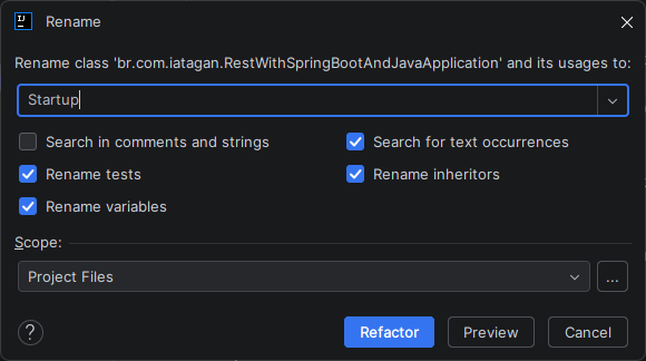 Renomeia para: Startup.java