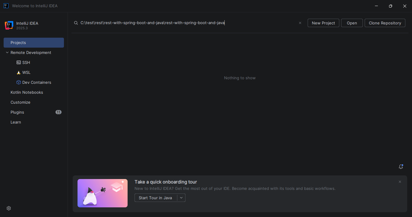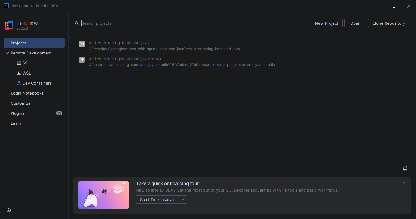 Use o Intellij instalado no seu computador